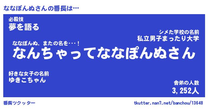 | 肩書あだ名 | 『ななぽんぬ社長』『ななぽんぬ大統領』 |