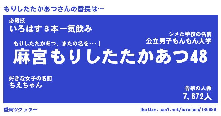 | ヘコむあだ名 | 『もりふぇ~』『酢こんぶ』 |