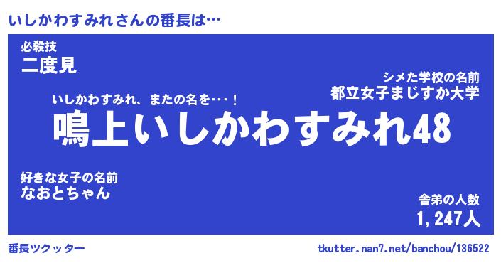 | 2回繰り返すあだ名 | 『いしいし』『いいしし』『ぬるぬる』 |