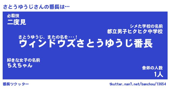 | 肩書あだ名 | 『さとうゆうじ社長』『さとうゆうじ班長』 |