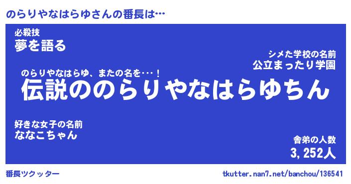 | ヒーロー風カッコイイあだ名 | 『スーパーノラリヤナハラユ』 |