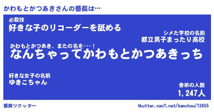 | 肩書あだ名 | 『かわもとかつあき店長』 |