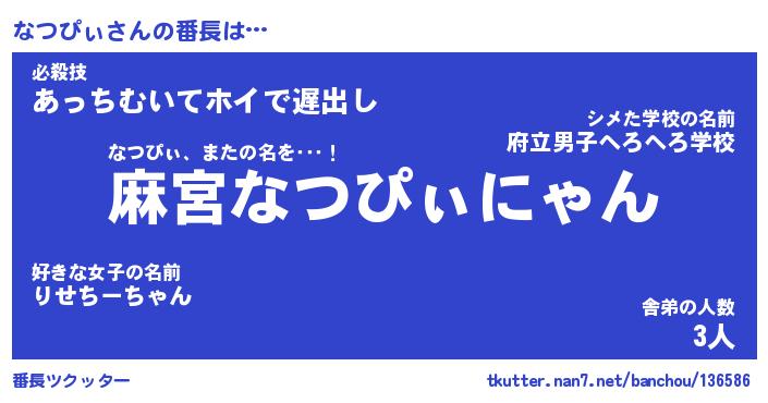 | 肩書あだ名 | 『なつぴぃ御曹司』『なつぴぃ総理大臣』 |