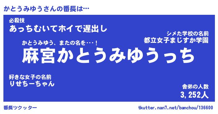 | ヒーロー風カッコイイあだ名 | 『スーパーカトウミユウ』『天弓騎士カト』 |