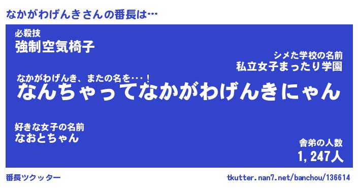 | 男性向けラノベタイトル風あだ名 | 『なかがわげんきの憂鬱』 |