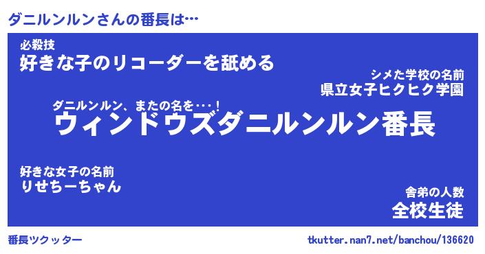 | ヒーロー風カッコイイあだ名 | 『スーパーダニルンルン』『幻影騎士ダニ』 |