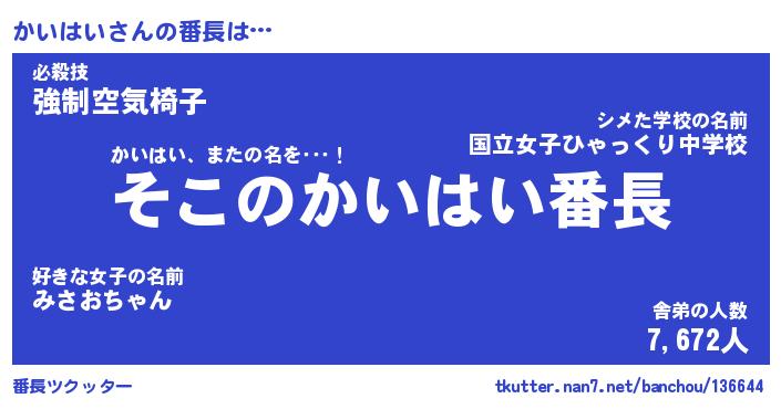 | ポケモン風あだ名 | 『カイチュウ』『カイハダネ』 |