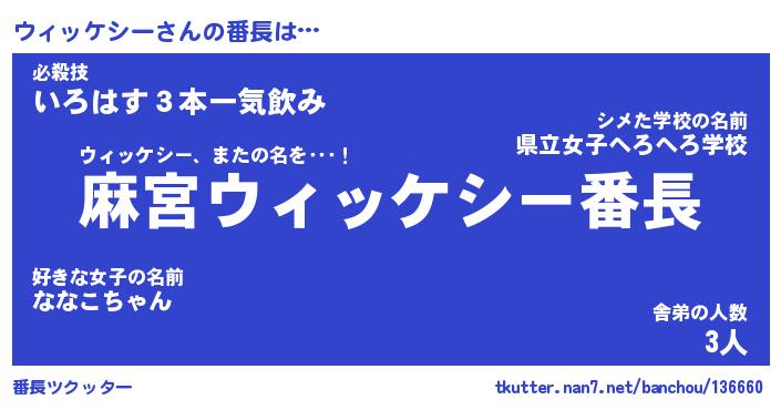 | ヒーロー風カッコイイあだ名 | 『スーパーウィッケシー』『魔戒騎士ウィ』 |