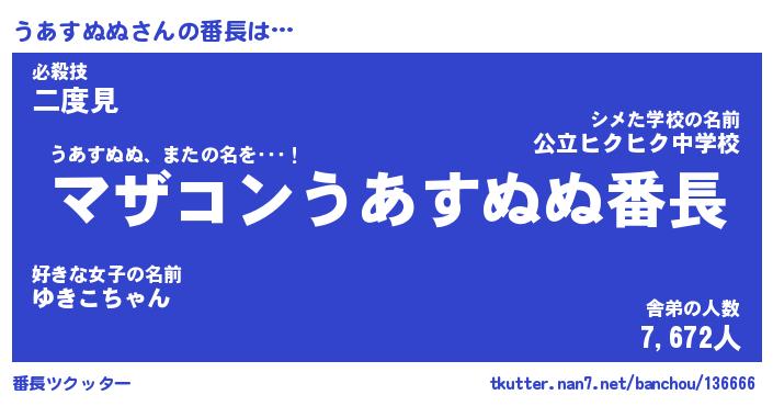 | ヒーロー風カッコイイあだ名 | 『スーパーウアスヌヌ』『炎刃騎士ウア』 |