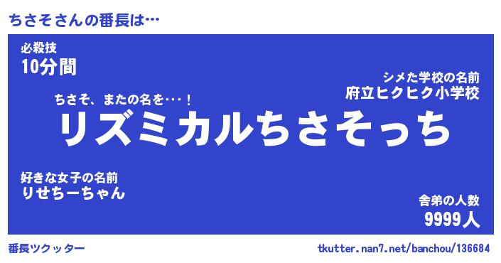 | 伝説のあだ名 | 『伝説のスナイパーちさそ』 |