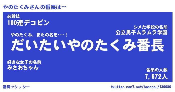 | 男性向けラノベタイトル風あだ名 | 『やのたくみの憂鬱』 |
