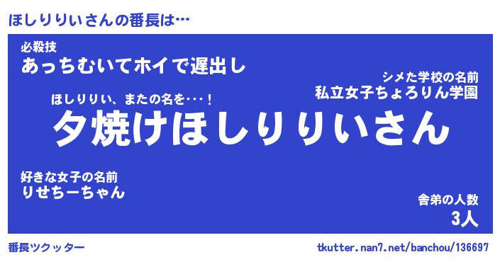 | 欧米人風あだ名 | 『マイケルほしりりい』 |