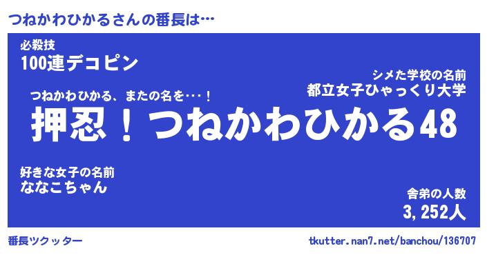 | ピコ太郎風あだ名 | 『ツコ八郎』『ピツ三郎』『ツネ一郎』 |