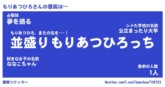 | 肩書あだ名 | 『もりあつひろ店長』『もりあつひろ担任』 |