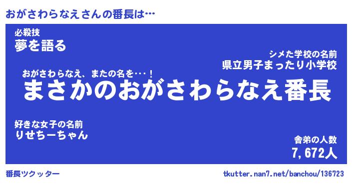 | 2回繰り返すあだ名 | 『おがおが』『おおがが』『ぬらぬら』 |