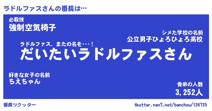 | ヒーロー風カッコイイあだ名 | 『スーパーラドルファス』『幻影騎士ラド』 |