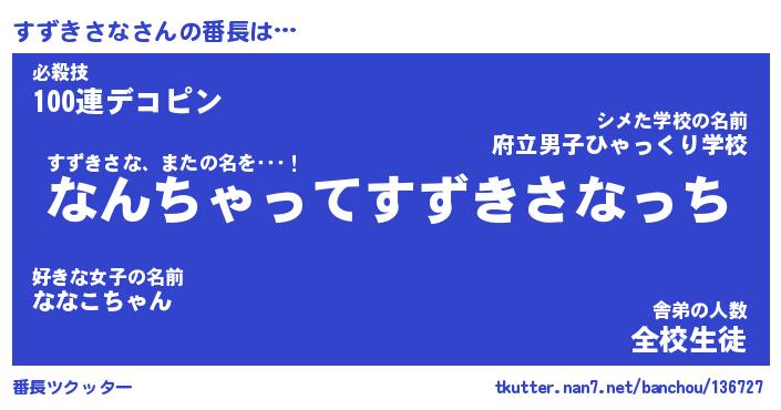 | ヒーロー風カッコイイあだ名 | 『スーパースズキサナ』『暗黒騎士スズ』 |