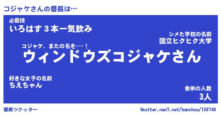 | 男性向けラノベタイトル風あだ名 | 『コジャケの憂鬱』 |