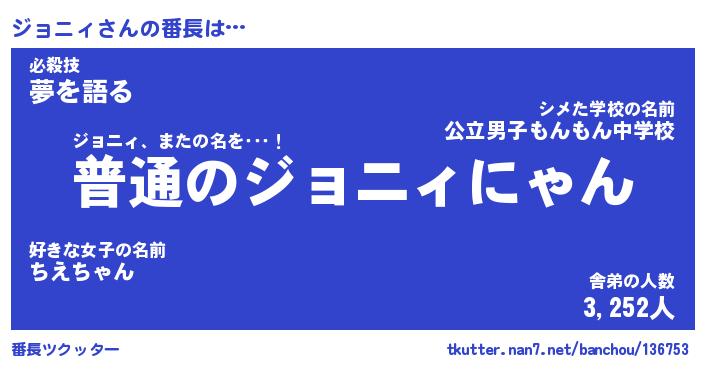 | 意味不明あだ名 | 『ペロリンジョニィ』『永久保存ジョニィ』 |