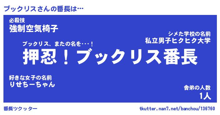| ヒーロー風カッコイイあだ名 | 『スーパーブックリス』『黄金騎士ブッ』 |