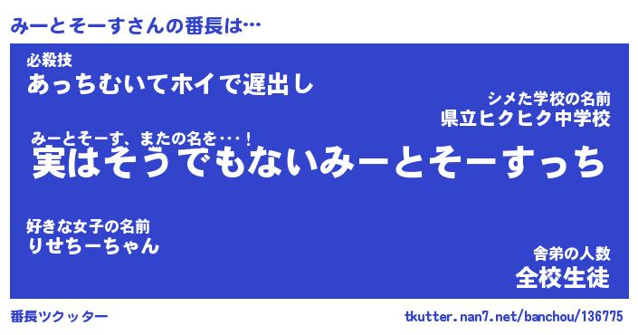 | ピコ太郎風あだ名 | 『ミコ十郎』『ピミ三郎』『ミー次郎』 |