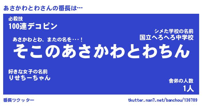 | 肩書あだ名 | 『あさかわとわ社長』『あさかわとわ団長』 |