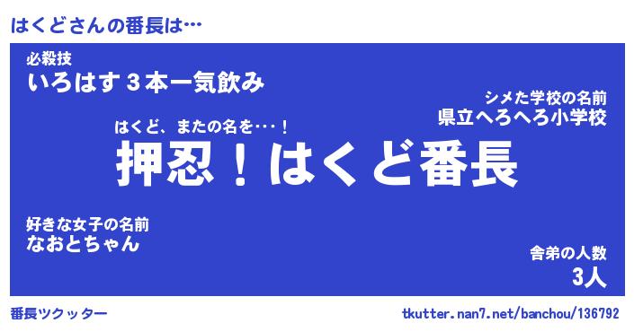 | ヒーロー風カッコイイあだ名 | 『スーパーハクド』『ウルトラはくどマン』 |