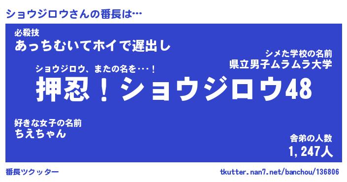 | 男性向けラノベタイトル風あだ名 | 『ショウジロウアートオンライン』 |