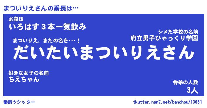 | ピコ太郎風あだ名 | 『マコ三郎』『ピマ五郎』『マツ二郎』 |