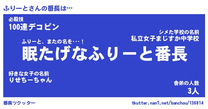 | 肩書あだ名 | 『ふりーと店長』『ふりーと国家主席』 |