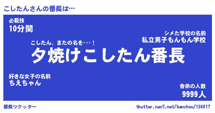 | ファンタジー風あだ名 | 『コシフェル』『エターナルコシタンー』 |