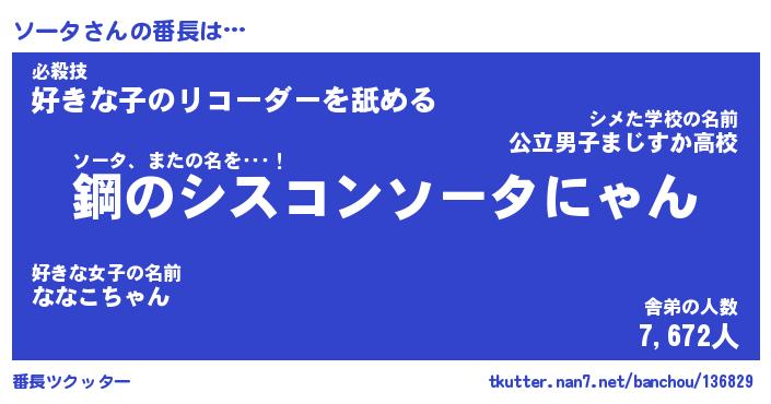 | ポケモン風あだ名 | 『ソーチュウ』『ソータダネ』 |