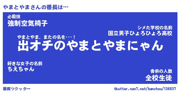 | 肩書あだ名 | 『やまとやま店長』『やまとやま国家主席』 |