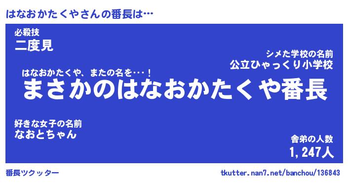 | ヘコむあだ名 | 『はなにゅー』『酢こんぶ』『はなお』 |