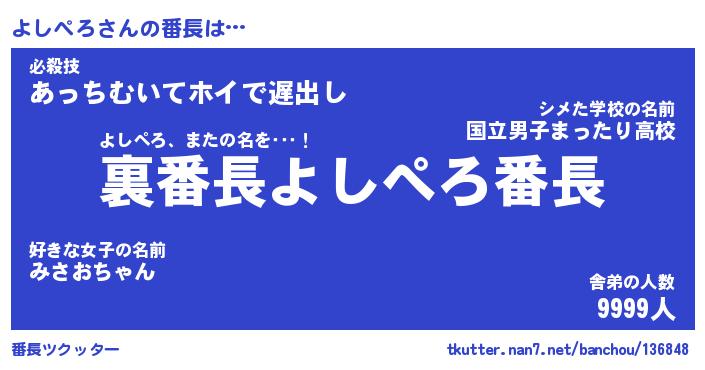 | 意味不明あだ名 | 『ペロリンよしぺろ』『永久保存よしぺろ』 |