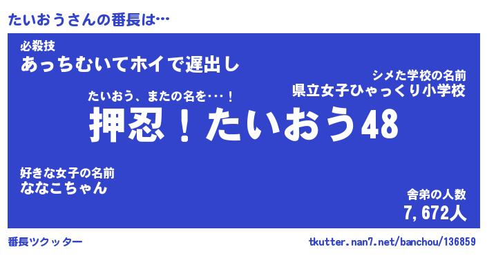 | 意味不明あだ名 | 『ペロリンたいおう』『永久保存たいおう』 |