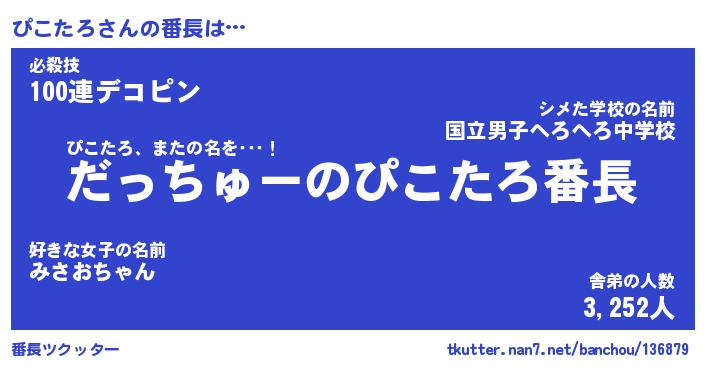 | 意味不明あだ名 | 『ペロリンぴこたろ』『永久保存ぴこたろ』 |