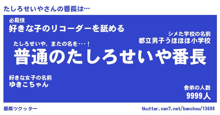 | 意味不明あだ名 | 『ペロリンたしろせいや』 |