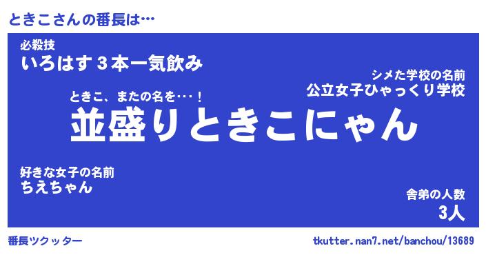 | 意味不明あだ名 | 『ペロリンときこ』『ときこフォーエバー』 |
