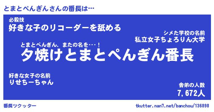 | 2回繰り返すあだ名 | 『とまとま』『ととまま』『ぬらぬら』 |