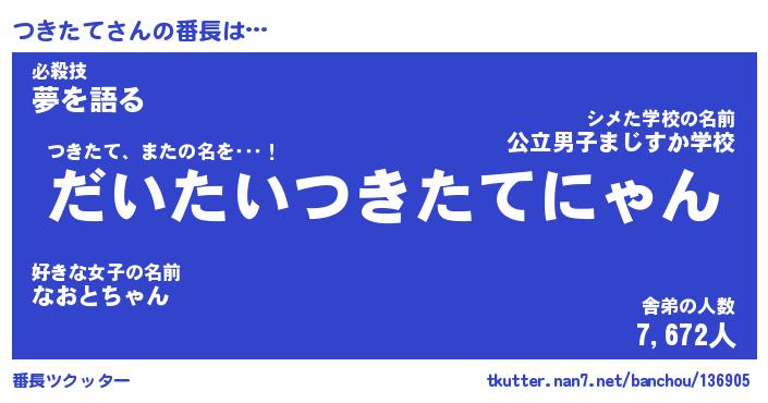 | ファンタジー風あだ名 | 『ツキフェル』『エターナルツキタテー』 |