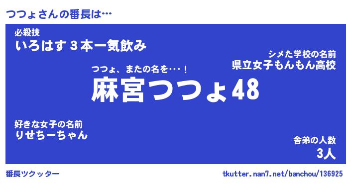 | ファンタジー風あだ名 | 『ツツフェル』『エターナルツツョー』 |