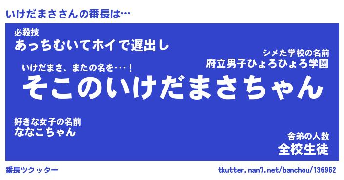 | ポケモン風あだ名 | 『イケチュウ』『イケダダネ』 |