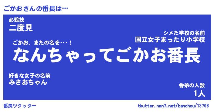 | ヒーロー風カッコイイあだ名 | 『スーパーゴカオ』『ウルトラごかおマン』 |