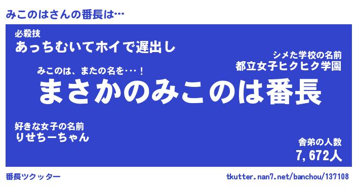 | 2回繰り返すあだ名 | 『みこみこ』『みみここ』『ねちねち』 |