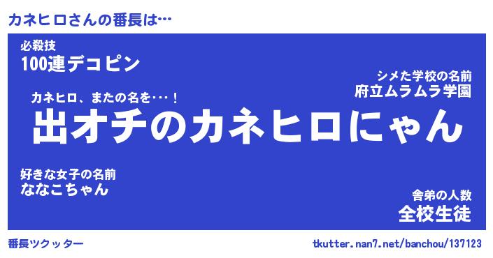 | ヒーロー風カッコイイあだ名 | 『スーパーカネヒロ』『暗黒騎士カネ』 |