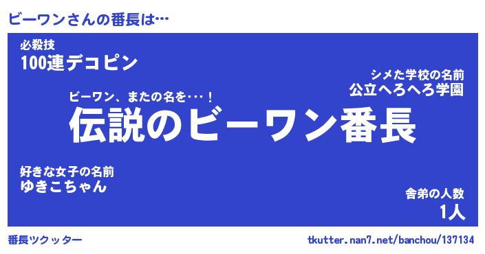 | 意味不明あだ名 | 『ペロリンビーワン』『永久保存ビーワン』 |