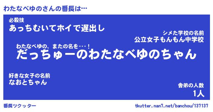 | ポケモン風あだ名 | 『ワタチュウ』『ワタナダネ』 |