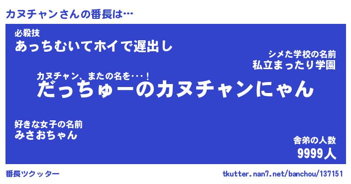 | ポケモン風あだ名 | 『カヌチュウ』『カヌチダネ』 |