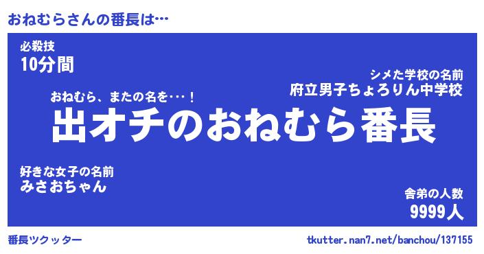 | 伝説のあだ名 | 『伝説のスナイパーおねむら』 |